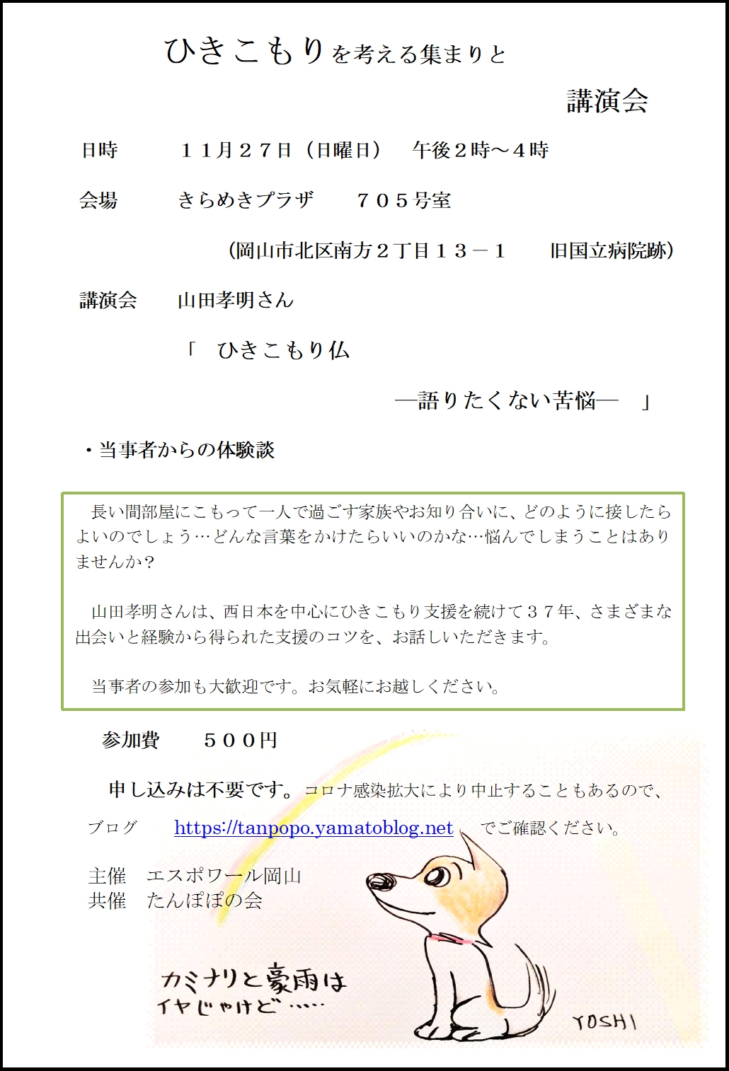 11月の定例会は予定通り講演会開催の方向で進めております。そのご案内も併せてアップいたします。